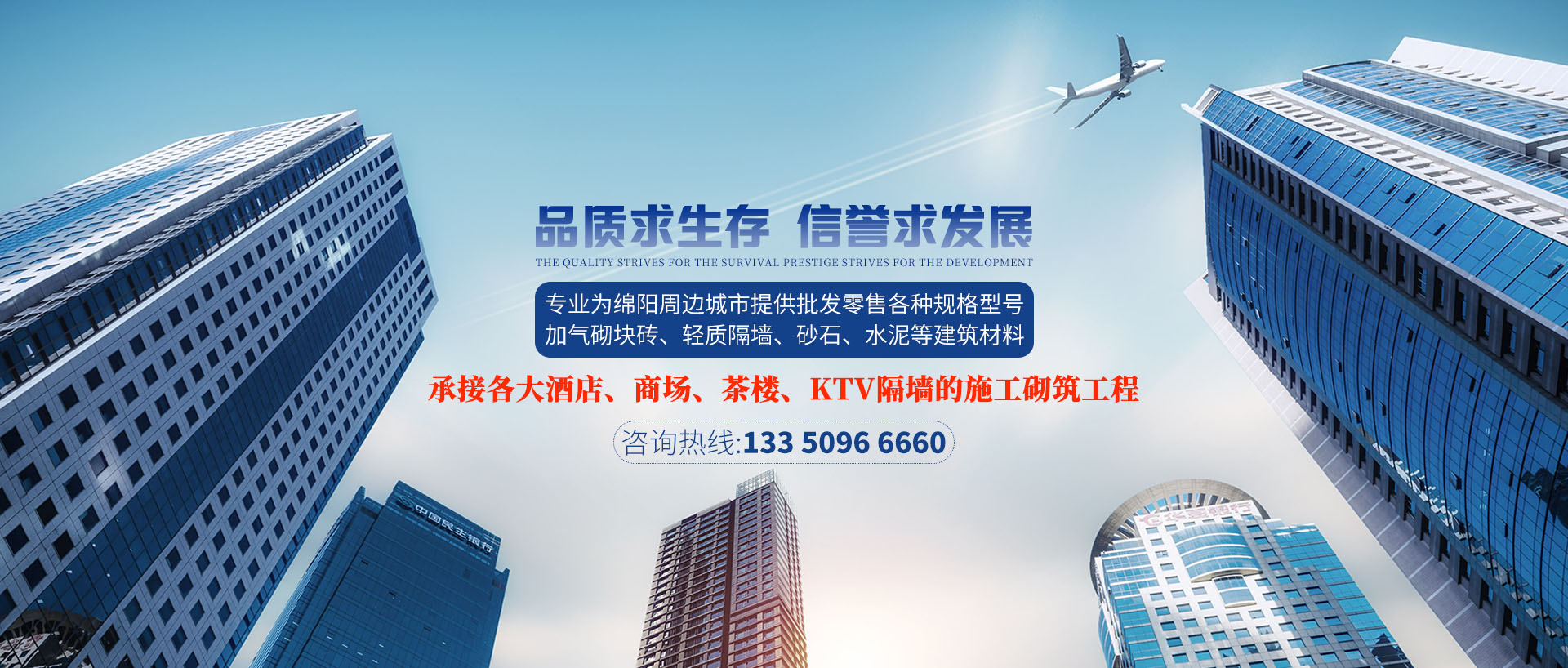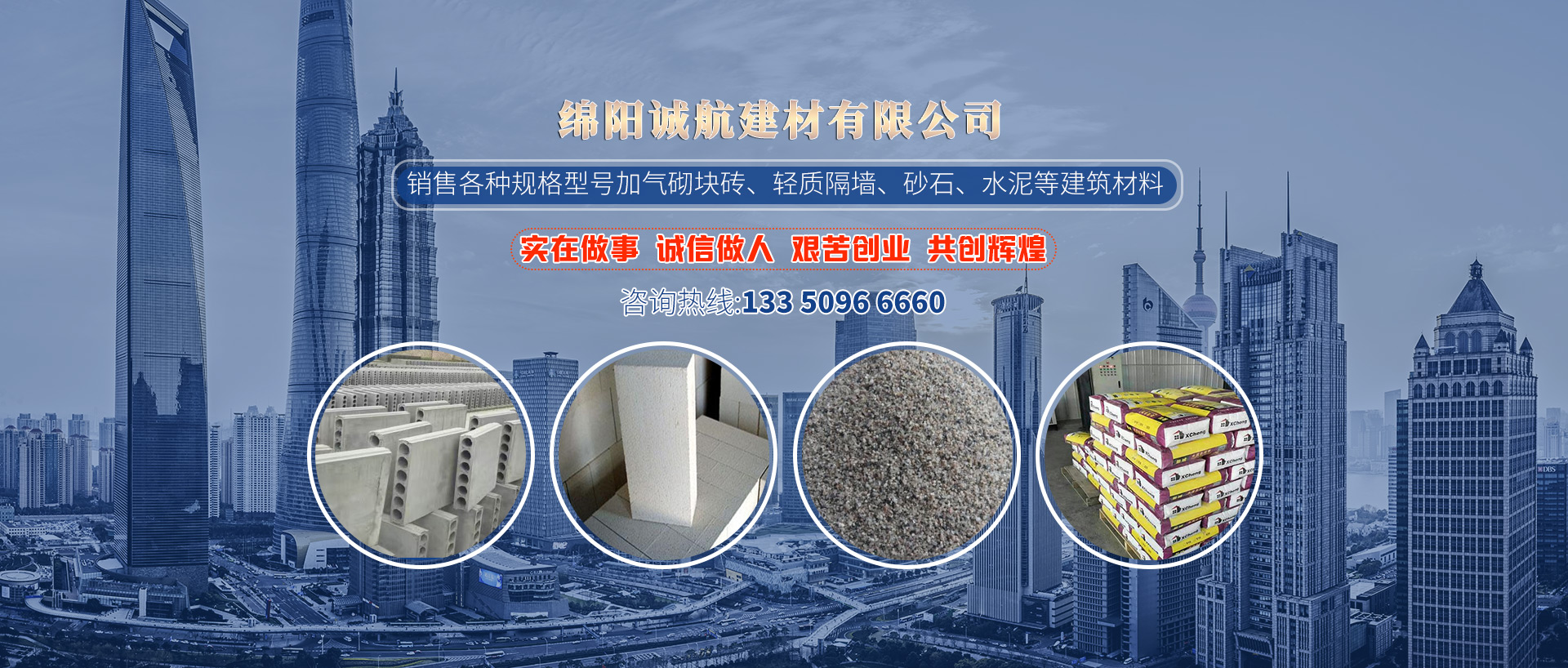 綿陽誠航建材有限公司是一家集銷售與施工砌筑為一體的輕質建筑材料公司。專業為綿陽周邊城市提供批發零售各種規格型號加氣砌塊磚、輕質隔墻、砂石、水泥等建筑材料。承接各大酒店、商場、茶樓、KTV隔墻的施工砌筑...